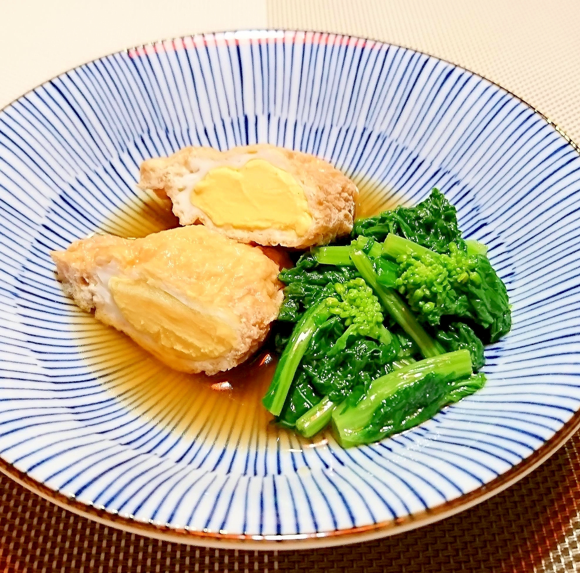 卵と油揚げで 菜の花と卵の巾着煮 By アレックスさん レシピブログ 料理ブログのレシピ満載